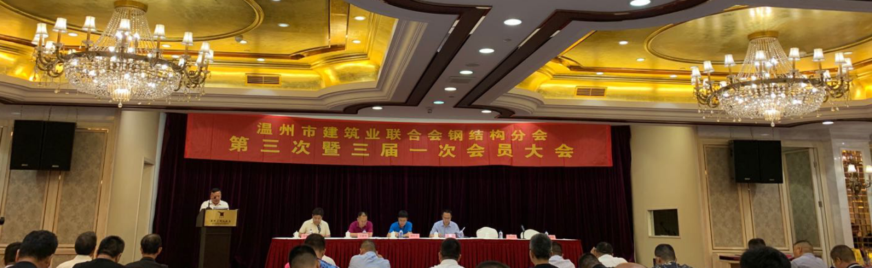 7月10日下午,我市在王朝大酒店召開溫州市建筑業(yè)聯(lián)合會鋼結構分會第三次暨三屆一次會議大會。溫州市建筑業(yè)聯(lián)合會會長胡正華、副會長諸經(jīng)宇,鋼結構分會會長方云杰等出席會議。