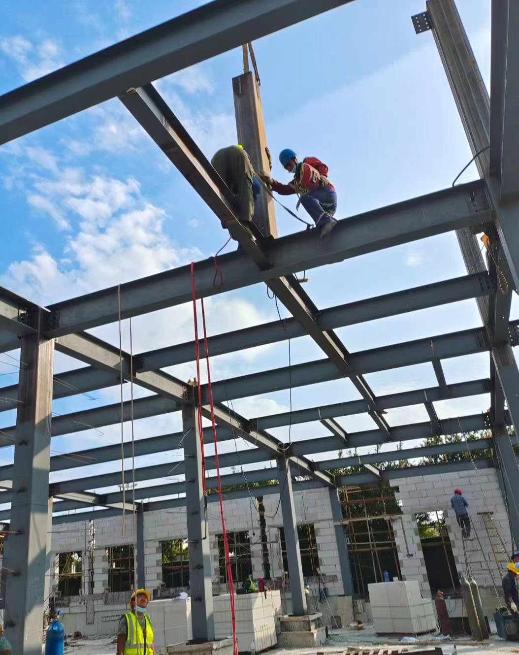 為助力溫州疫情期間醫(yī)院建設(shè)施工順利進行,結(jié)合當前溫州市疫情防控的形勢下,作為關(guān)鍵時期的關(guān)鍵之舉,醫(yī)院建設(shè)時間緊、任務(wù)重、責(zé)任重大。公司對該工程全面增派施工人手,嚴格按照時間節(jié)點細化工程量、作業(yè)面,倒排工期、掛圖作戰(zhàn),加快施工進度。加強部門協(xié)調(diào)力度,堅持問題導(dǎo)向,全面統(tǒng)籌協(xié)調(diào)解決好工程施工過程中遇到的所有問題。連日來,經(jīng)過我公司全體人員不懈努力全力全速,發(fā)揚連續(xù)作戰(zhàn)精神,緊密協(xié)同的配合下,歷經(jīng)10天,方艙醫(yī)院發(fā)熱門診工程主體鋼構(gòu)已全部完工。
